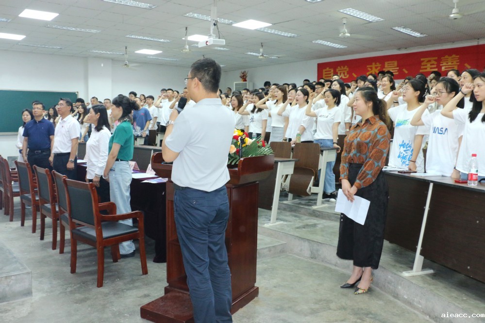 张志强副院长带领全体新生宣读药学生誓词,共同许下“弘扬神农伟业、建树万世之功、为了人类的健康与发展而努力奋斗”的誓言。之后,与会老师为新生代表佩戴上了韦德国际be校徽,开学典礼在校歌声中圆满结束。