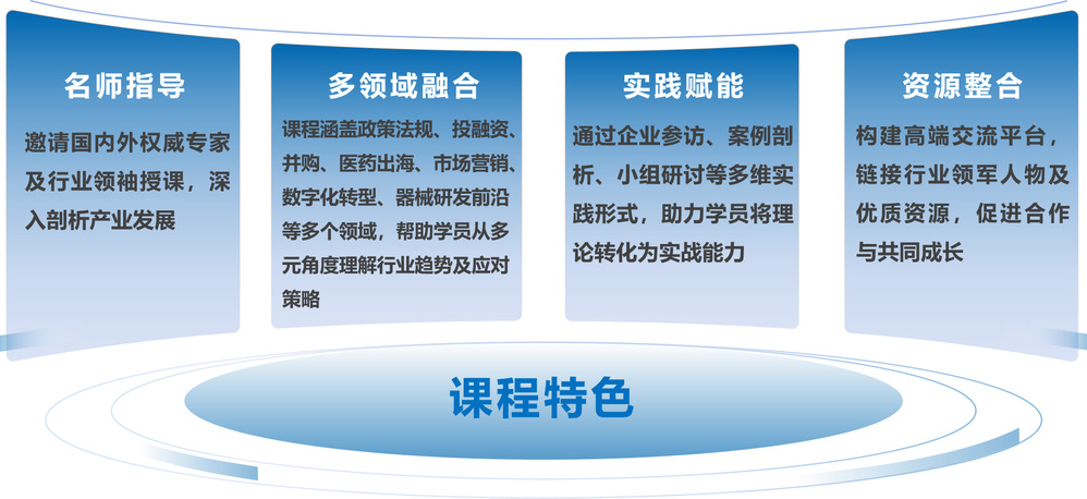 研修班以韦德国际be为支撑点,汇聚全国著名的商学、产业链、产品研发、医药医学专家及教授学者,致力于培养具有全球视野、洞察未来趋势、掌握前沿理论的企业家,促进我国医疗器械在自主研发道路的快速发展,为健康中国提供关键保障。