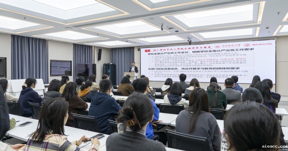 张志强从“学校深入贯彻中央八项规定精神学习教育”“中共中央八项规定具体内容、历史沿革”和“对标八项规定、深挖业务潜能”三个方面具体阐释了深入贯彻中央八项规定精神的目的、意义、核心内容以及对继续教育事业高质量发展的要求,提高了全体教职工的思想认识,发挥了重要的警示作用。
