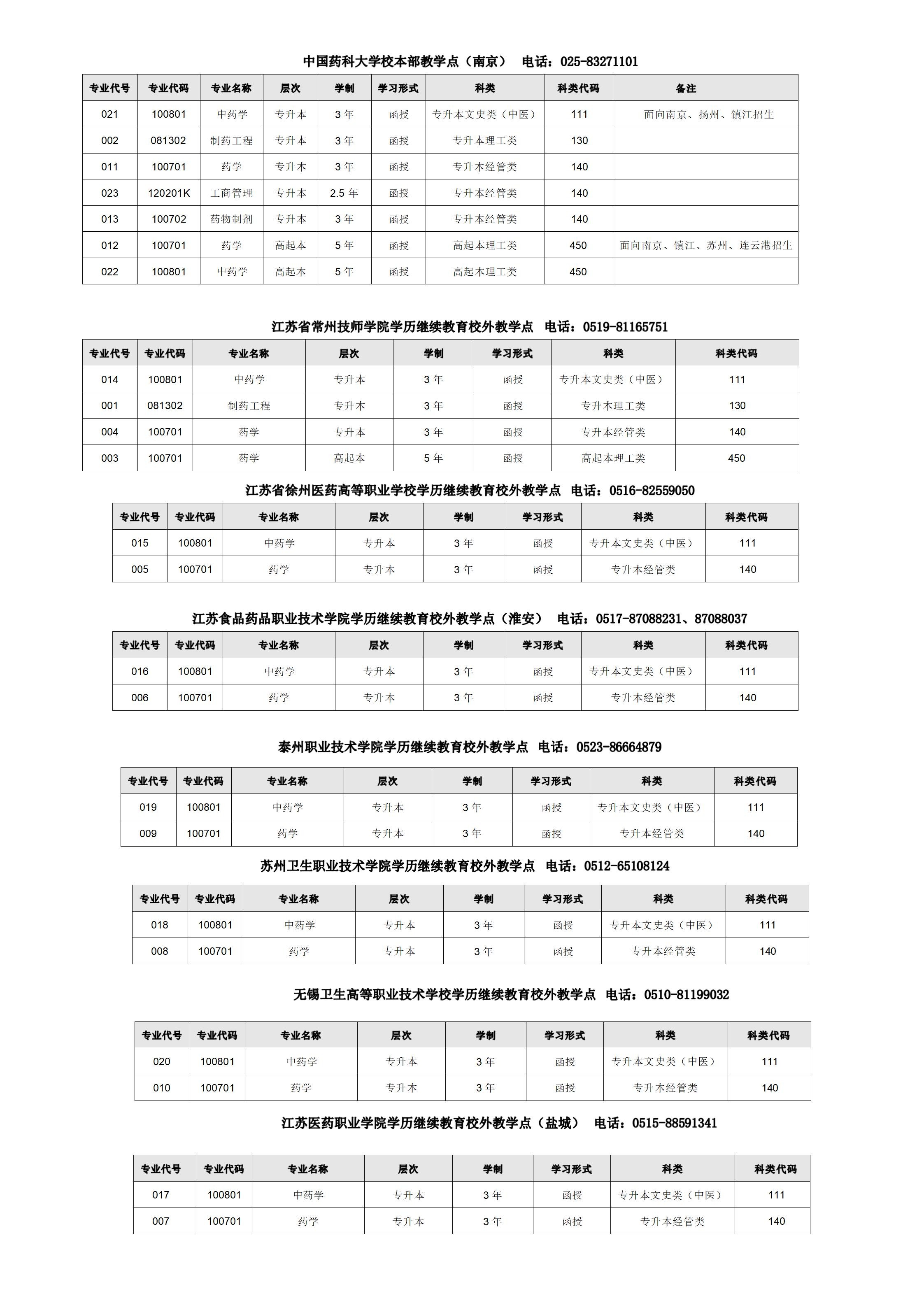 2023年韦德国际be成人高等教育江苏省各教学点招生一览表