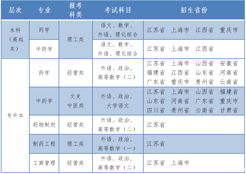 专业优势: 在历次教育部学位与研究生教育发展中心组织的全国学科评估中,药学、中药学学科排名始终名列前茅。药学专业先后被评为江苏省成人教育特色专业和重点专业。