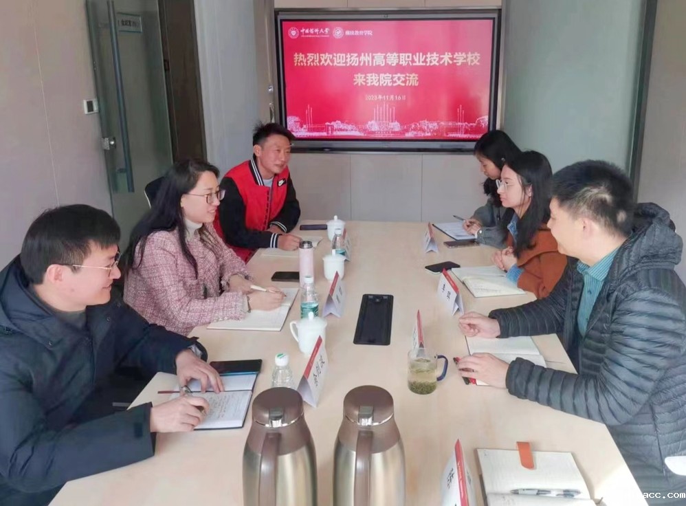 会上,张永泽院长对周劼主任一行的到来表示热烈欢迎,介绍了学院近年来在非学历教育和自学考试办学方面的发展情况和相关成果,希望与扬州高等职业技术学校通过学历提升和专业化的医药人才培训共同推动医药行业人才培养和发展。随后,周劼主任对扬州高等职业技术学校的培训、自学考试人才培养规模和相关情况进行了简单介绍,期待双方立足于两大办学领域、在实践培训环节和自考专业建设等方面开展合作。与此同时,双方与会人员针对药学相关专业师资培训、自考校外助学点设置等具体细节进行了深入交流。